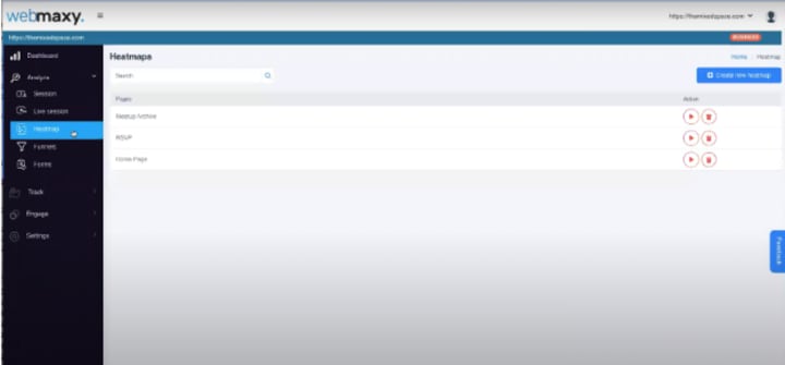 Now, the fun begins. Webmaxy lets you create heatmaps for multiple pages so that you can independently analyze the behavior of your audience and take the necessary steps.