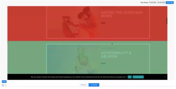 Scroll maps are a great tool for heat map data visualization. It will help you understand the depth of the scroll and the level to which your audience is interested in your content.