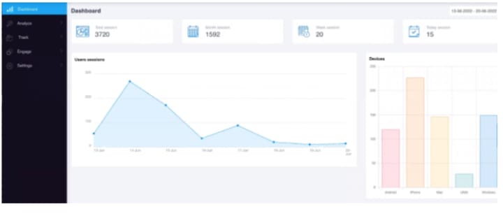 Through the dashboard, you can learn about the number of sessions, the nature of devices, the most visited pages, etc., within a few seconds.