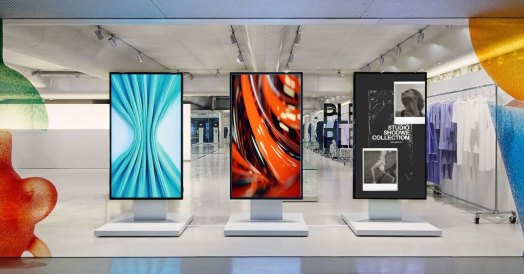 Retail: Used for branding, wayfinding, and "endless aisle" kiosks.