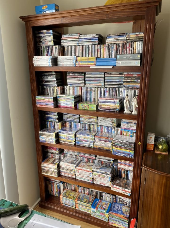 My family has a large cabinet in our lounge room, which contains over 500 titles, ranging in genre from Star Wars to war movies such as the Memphis Belle and The Great Escape to my wife’s favourite series such as Pride and Prejudice, As Time Goes By and Keeping Up Appearances. She loves watching these series annually, to go over their iconic scenes and beautiful English scenery.