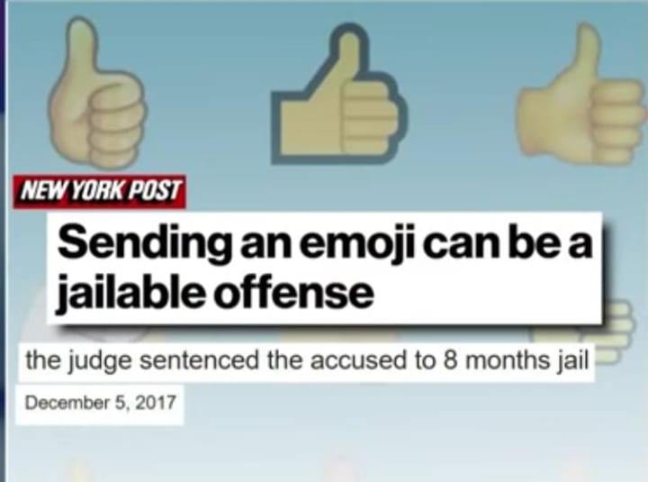 A primitive language which was born of digital words- The Emoji Language, those little pictorial icons on our phones they punctuate our texts, memes and posts like smiley faces or praying hands or a high five, I'm sure you have used these. 92% Millennials used emojis in daily conversations and just in the past three years emojis have seen 775% rise in use. Like everywhere on all social media be it YouTube, Instagram, LinkedIn, Facebook, Medium, Vocal etc etc. Like love is expressed with a heart emoji, mean jokes are masked by laughing emoji and in some cases, people are taken to court over a thumbs up. That's what happened in Canada.