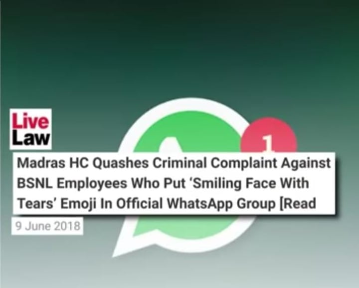 In 2018 46 people were slabbed with criminal cases in India for replying to a woman's official message with an emoji, the case was later quashed by Madras High Court.
