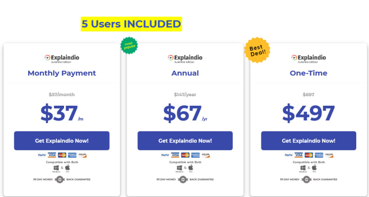 Explaindio Pricing