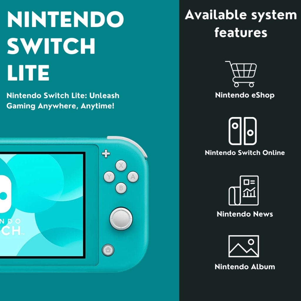 What truly makes the Nintendo Switch Lite shine is its remarkable game library. Compatible with a vast array of Nintendo titles, it allows you to delve into beloved franchises like Mario, Zelda, Pokémon, and more. Whether you're navigating the treacherous landscapes of Hyrule or embarking on a whimsical journey through the Mushroom Kingdom, the Turquoise Switch Lite ensures every adventure is captivating.