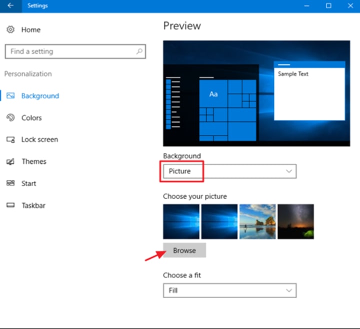 Next comes the option of Lock Screen, here you can set wallpaper for your lock screen, here too you set a personalized image or something which came with the factory settings. This will also provide you with the options to set which icons you want in your lockscreen, Cortana settings, screen saver, etc.