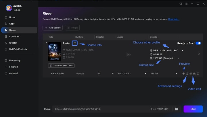 There is also a more flexible way to copy DVDs by converting them into widely compatible digital formats like MP4, AVI, MOV, and more. This allows you to play your copied files on various devices instead of being limited to a DVD player. If you prefer this method, DVDFab DVD Ripper can help you copy DVDs on Mac as digital files.
