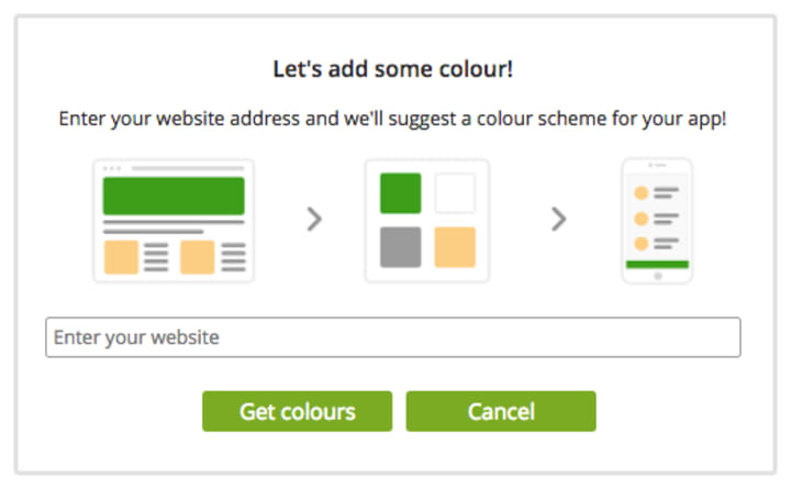 To make your life even easier, after you enter your web address during the initial stages, the app builder will automatically generate four color schemes based on the colors found on your website. This means you can achieve the perfect match and avoid the time-consuming process of searching for hex codes!