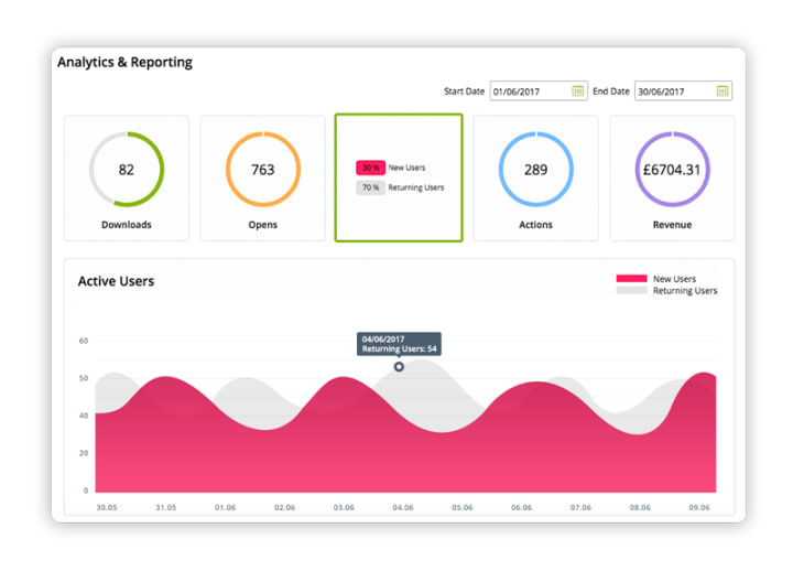You’ll also be able to access your app’s analytics data to view downloads, app actions as well as download sales reports across customized time frames to track the success of campaigns or learn how much revenue your app is making.