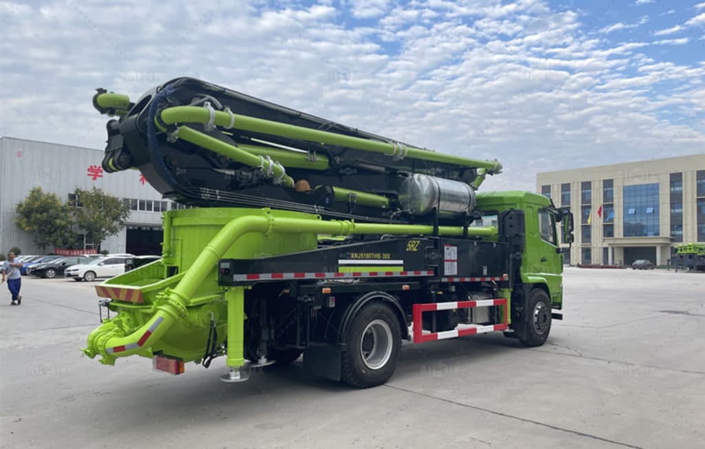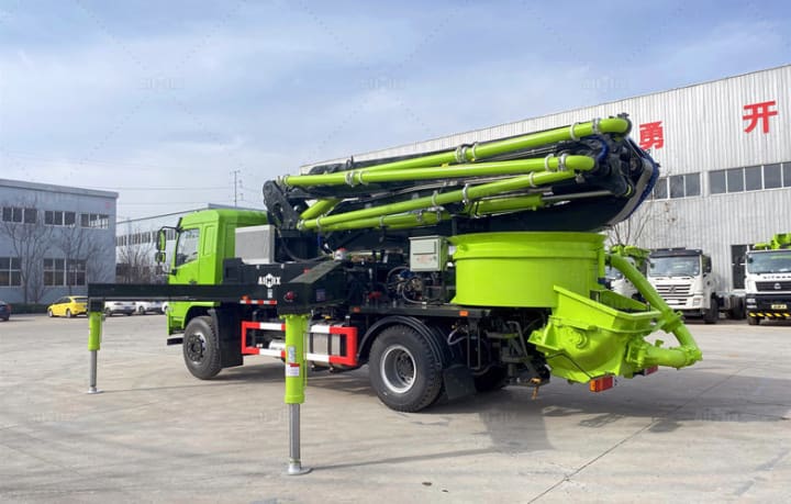 There must be enough room not only for the truck itself but also for the full extension of the boom, outriggers, and any auxiliary equipment. A portable concrete pump, although smaller, still needs space for hoses, pipelines, and workers to move freely.