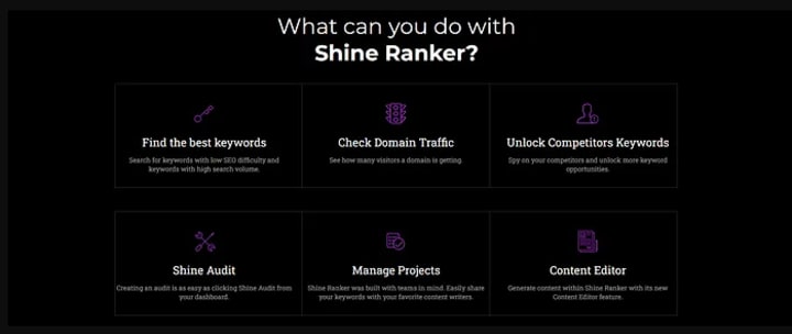 Shine Ranker is a simple, user-friendly tool that lets you reach your target audience and achieve online success. This tool offers a range of features that can help businesses and individuals improve their search engine rankings and drive more organic traffic to their site. With its cutting-edge technologies, this innovative platform will make it easy for users to boost their website’s search engine rankings.