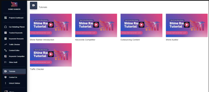 In case you encounter any difficulties or uncertainties when using Shine Ranker. There is a tutorial section that provides detailed explanations of each feature.