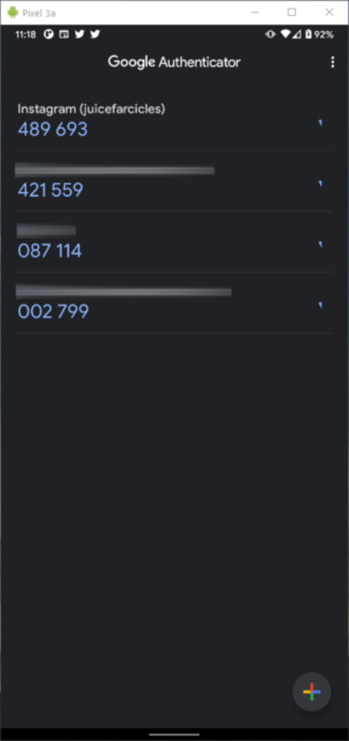 Of course, you could just not bother and use your computer-based capture tool of choice to take some shots. In this case, the output quality is highly dependent on your monitor, save for if you're forcing a higher resolution, but you can definitely use scrcpy in this manner. If you're just picking up a bunch of passwords or login codes — Google Authenticator v5.10 isn't the best example to use, but you're able to use the tool on Chrome Incognito tabs unlike most on-device screen recorders — you're pretty much fine here.