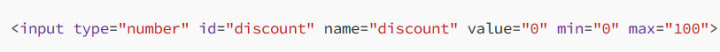<input type="number" id="quantity" name="quantity" value="1" min="1" max="100">