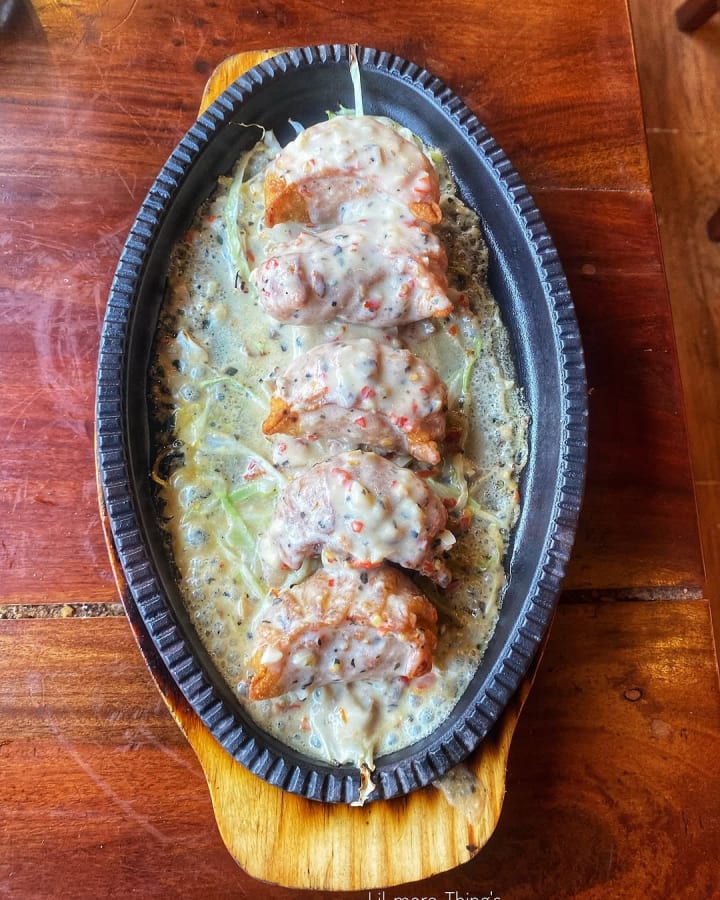 Served on a sizzling plate, this dish features five deep-fried momos topped with creamy Alfredo sauce and chopped veggies. My friend really liked it, but I wasn't quite as convinced.