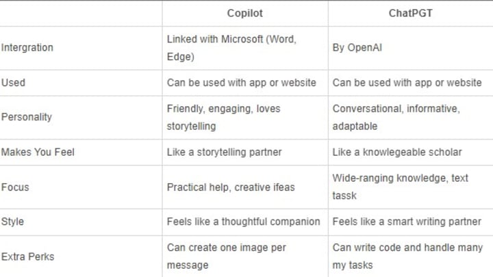 There are differences between ChatGPT and Copilot, and I love both of them.