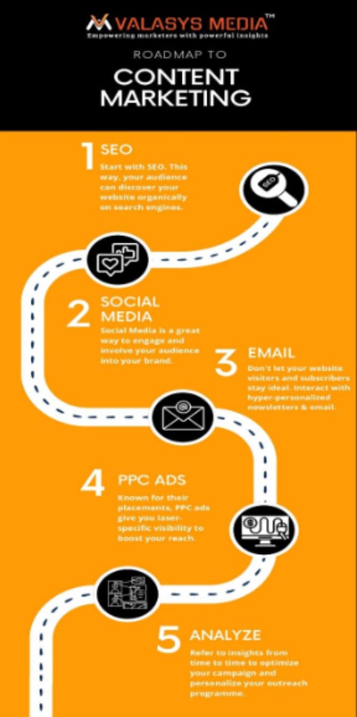 Content Marketing produces the most effective result when deployed strategically and step-by-step. So, where do you start? At what stage of the process should you deploy Google Ads or Social Media Ads? Should you build a social media presence for your brand first or create a presence on the search engine? At what stage should you deploy PPC-Ads? At what stage of a buyer's journey should you retort to email marketing & newsletters? All these are summarized in our Roadmap to Content Marketing.