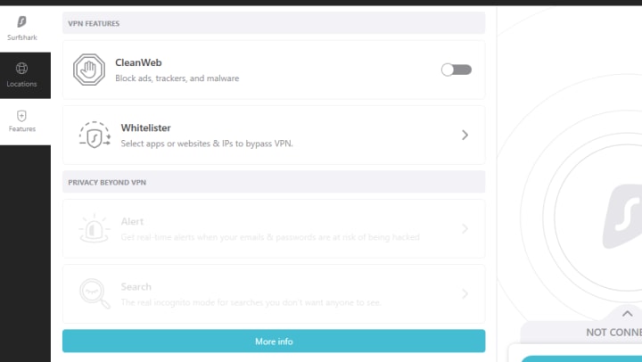 Surfshark includes several personal privacy tools that exceed VPN security: a custom-made DNS solution called Smart DNS; an ad-blocker branded as CleanWeb; Surfshark Alert, which signals you if your accounts have been endangered, similar to HaveIBeenPwned; as well as a privacy-respecting search device called Surfshark Browse.