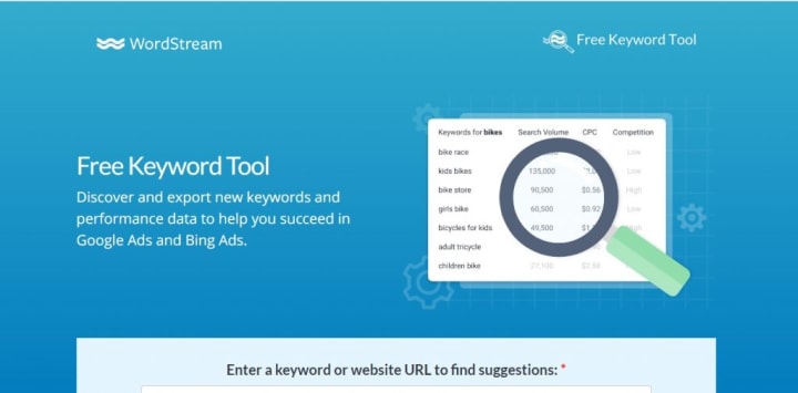 Wordstream keyword research tool for content writing