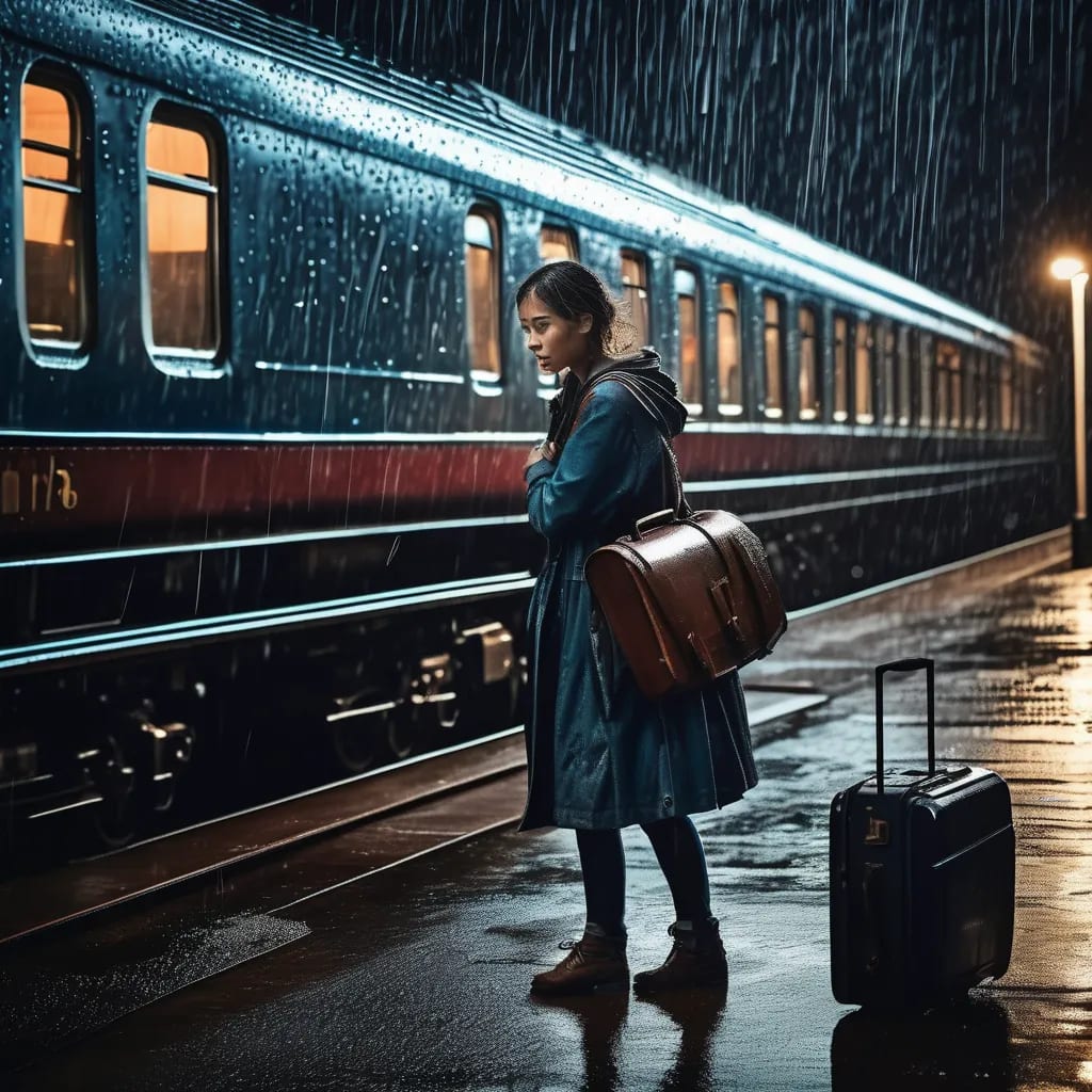 With renewed determination, Mia stood up and made her way to the door. She opened it slightly, feeling the cool, fresh air mix with the scent of rain. As the storm raged outside, she made her decision. This train might be taking her away, but home would always be there waiting for her.