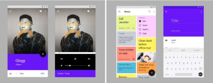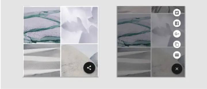 The second type of FAB animation is morphing. The FAB morphs either into a new surface (Figure 7) or into an entirely new screen (Figure 8). This way the FAB can make orienting and managing the space of the app easier for the user. It can also connect the actions and let the user know what has happened and how that action can be taken again. The FAB’s morphing should be reversible, i.e. the user should be able to bring back the new surface that has emerged from its initial state.