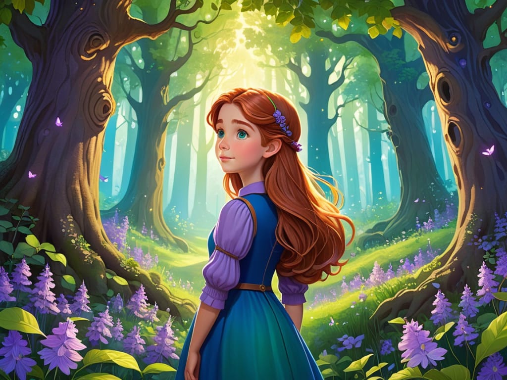 Among the villagers lived a curious girl named Lila. With chestnut hair that flowed like a river and eyes as green as the leaves in spring, Lila was known for her adventurous spirit. While other children played in the fields, Lila often found herself drawn to the edge of the Whispering Woods, feeling an inexplicable connection to its hidden depths.