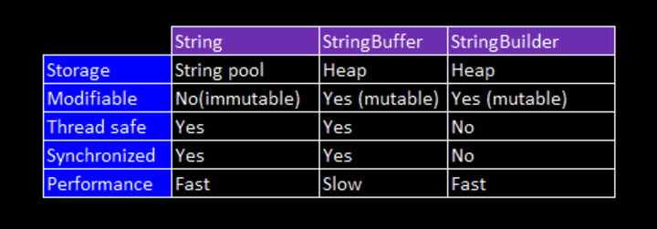 Bonus Que: Difference between String, String Buffer, String Builder