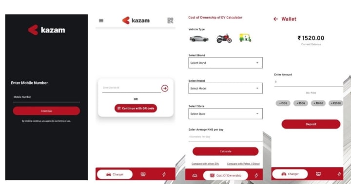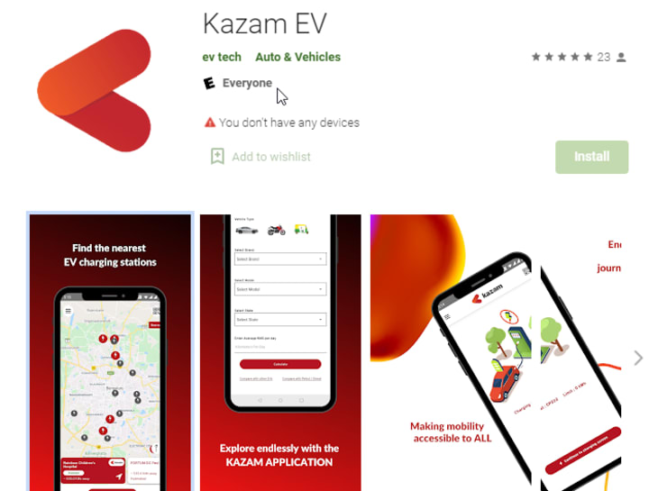 Kazam EV application available for Android and IOS users.