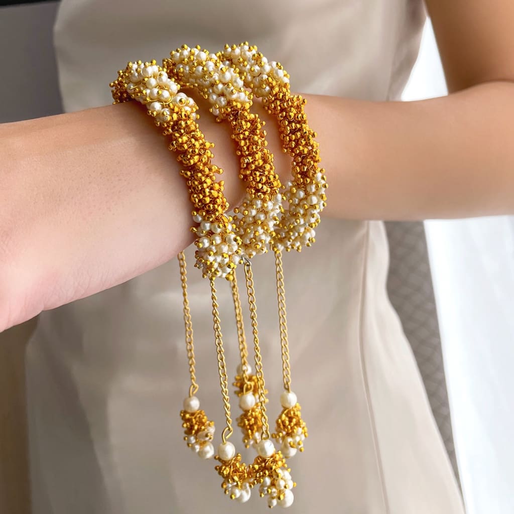 It is a wide or thin bracelet that falls on the wrist. It has an opening at the back which allows it to fall on the wrist. It is not like the bangle. It is tighter and does not slide up and down like the bangle. It comes in both dainty and bold designs. It is quite a statement piece if worn with the right outfit. You can pair these bracelets with dainty earrings. It will look great.