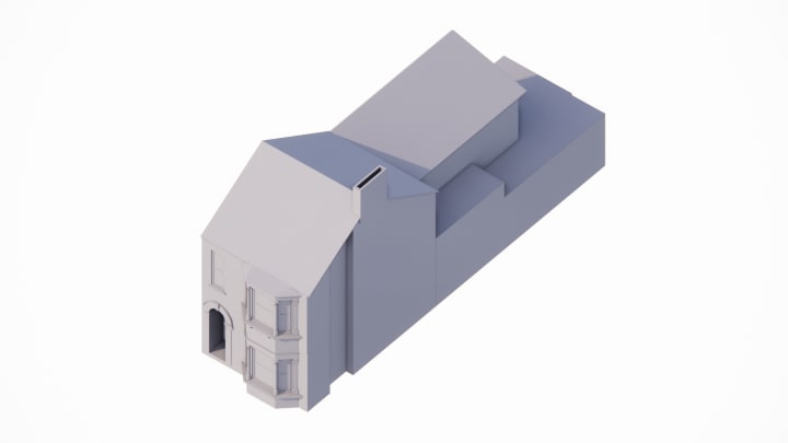 Doors and windows are displayed with the necessary frames, panels, handles, and more. Ceilings have the right thickness, material, or pattern. Railings are displayed with all necessary poles and rails. The model can be used to prepare project documentation.