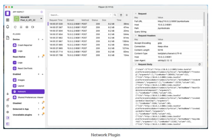 Flipper is a powerful debugging tool that troubleshoots network requests, logs, React Native App Development tools, crash reports, images, and more. You can employ various third-party plugins in accordance with the requirements of your application by adding them.