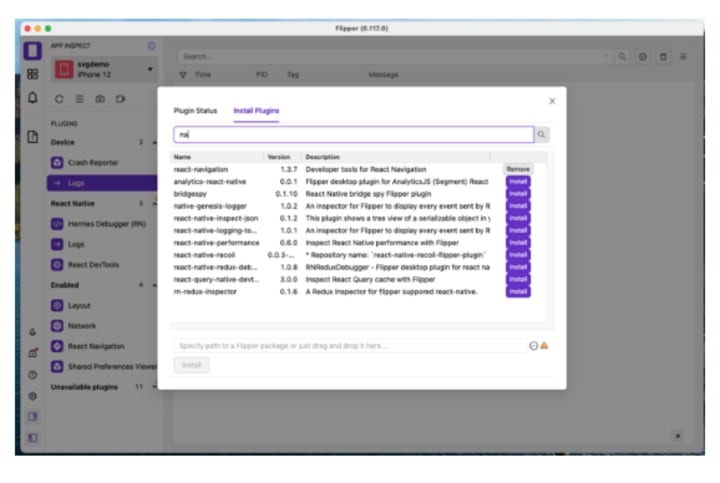 Top React Native app developers point out that Flipper’s plugin library, which lets you install plugins easily from the Flipper interface and expand its capabilities, is its most significant advantage over competing debugging tools. You can develop your plugins and distribute them! But let’s get started right away.