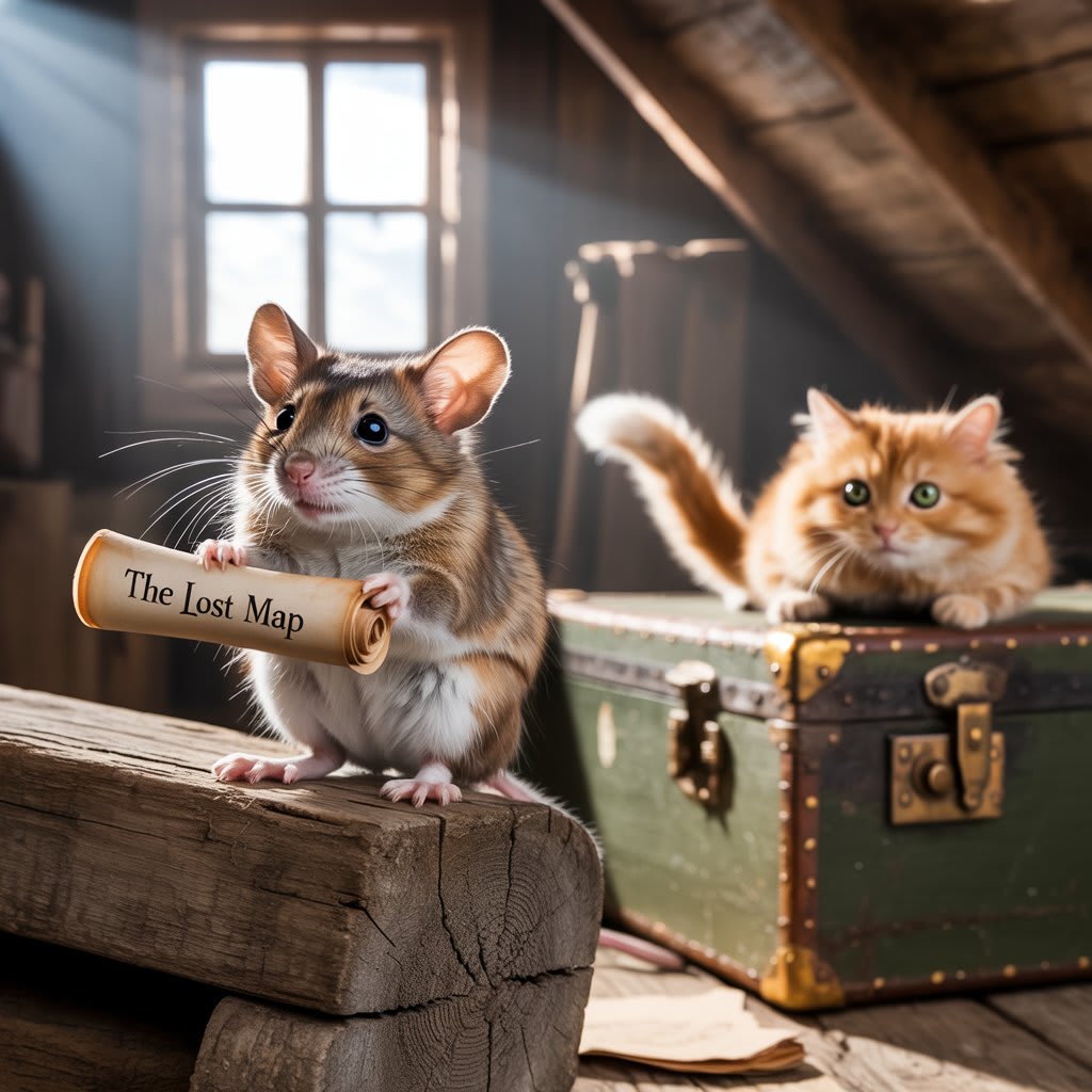 In the dusty attic of an old countryside cottage, a quiet world stirred each night when the humans went to bed. The wooden beams creaked with age, and shadows danced in the corners from the moonlight that filtered through a cracked window. It was in this attic that two unlikely creatures first crossed paths.