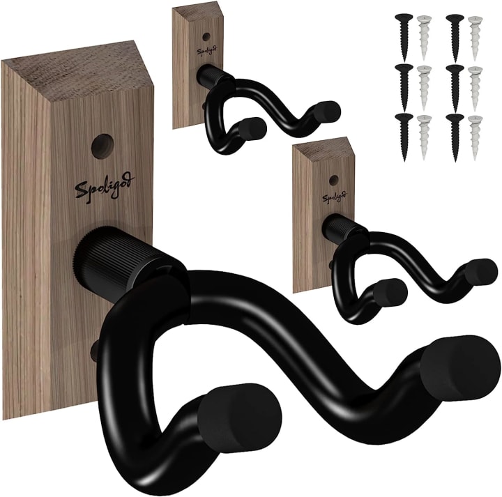 The "Guitar Wall Mount Hanger" is an exceptional accessory designed to provide a safe and stylish solution for storing guitars. Crafted from genuine black walnut hardwood, this hanger showcases a distinctive wood grain pattern and is meticulously polished to preserve the natural beauty of the wood. With its practical design and versatile compatibility, the guitar wall mount is suitable for a wide range of instruments, including acoustic, electric, bass, ukulele, mandolin, and banjo.