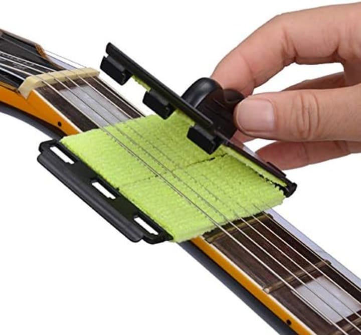 The "Guitar String Cleaner" is a highly effective and portable accessory designed to maintain the cleanliness of guitar strings and increase their lifespan. With its innovative design, this gadget allows guitarists to clean all-around the strings and frets, preserving the original tone of their instrument while ensuring the strings remain in top condition.