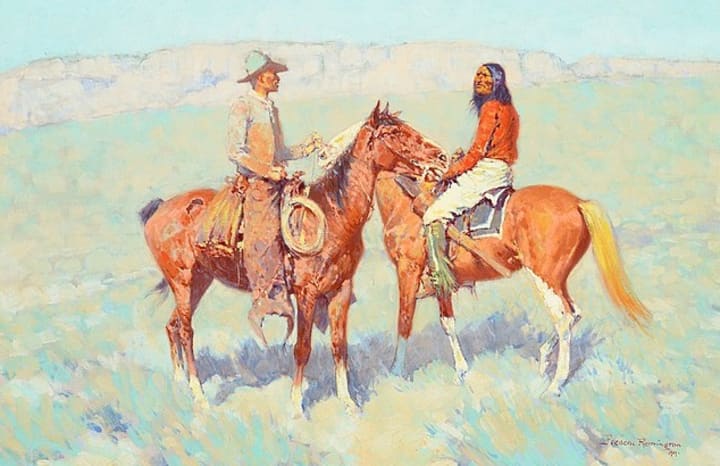 I had chosen the above image for one of my draft articles and this painting, in particular, does highlight Remington's fascination of the frontier land and its peoples.