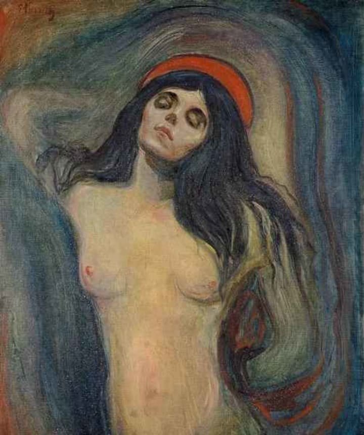 Madonna is the name of several versions of the same artwork. It depicts a half-naked woman with a red hat. The artist also referred to this painting as Loving Woman.