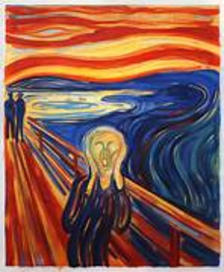Anxiety was a painting created by Munch a year after he completed the first version of The Scream. In both paintings the figures are similar, with faces of agony beneath a red sky. In this artwork, the artist wanted to express feelings of despair and heartbreak.