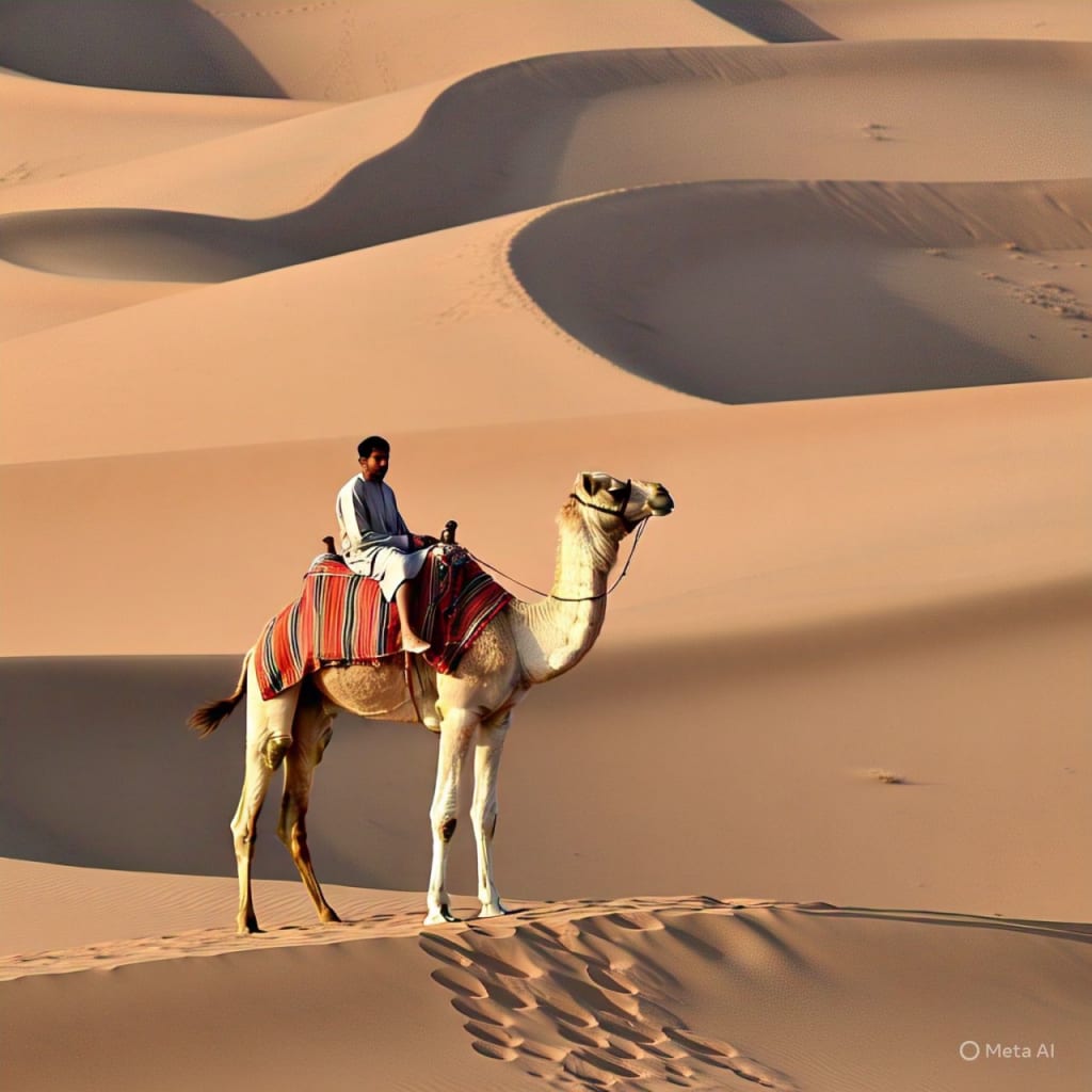 The sun beat down on the vast expanse of golden sand, casting a warm glow over the endless dunes. Ahmed, a young Arab, sat atop his trusty camel, Khalid, gazing out at the horizon. They had been traveling for days, traversing the unforgiving desert landscape with ease. The bond between Ahmed and Khalid was palpable, forged through countless journeys and shared hardships.
