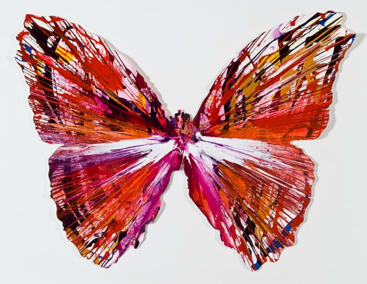 British artist Damien Hirst attended the Jacob Kramer School of Art and studied fine art at Goldsmiths College. He showcased his acclaimed series Natural History in 1991, which included preserved creatures in formaldehyde solution. The artist was fascinated with death, life, science, religion, and beauty, inspiring him to create such exhibitions as Some Went Mad, Some Ran Away, For The Love Of God, and The Agony And The Ecstasy within England and the international scene.