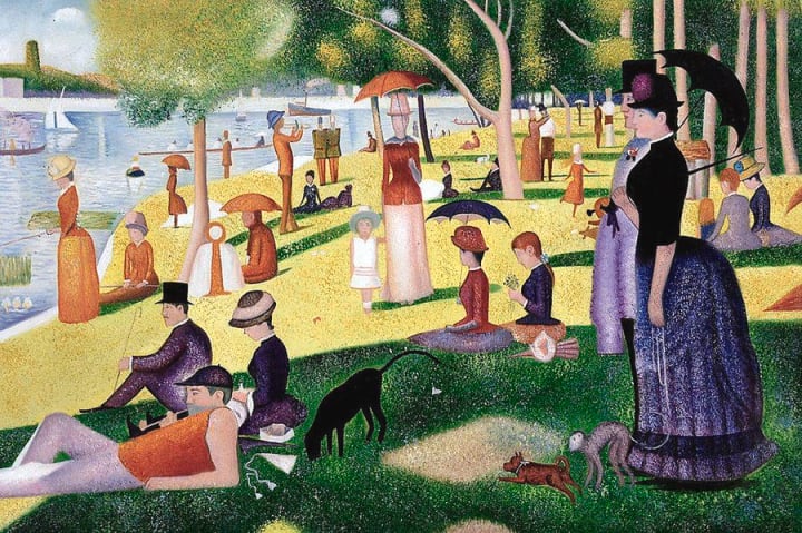 French artist Georges Pierre Seurat was a prominent painter during the post-impressionist movement. He invented the painting styles chromoluminarism and pointillism, and he employed conté crayon for rough-surfaced drawings on paper. He is best known for his large-scale masterpiece A Sunday Afternoon on the Island of La Grande Jatte. This artwork introduced neo-impressionism.
