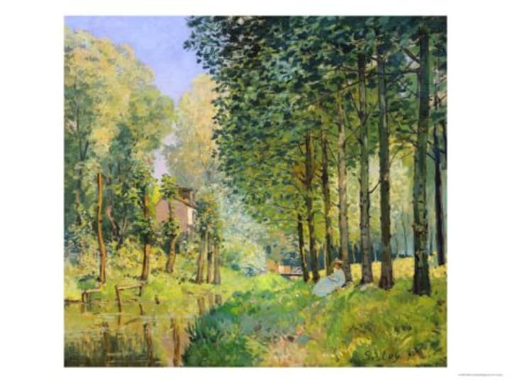 French artist Alfred Sisley was a highly talented pinter and created impressive landscapes. He created this artwork in 1878 depicting a slow moving creek along some trees.