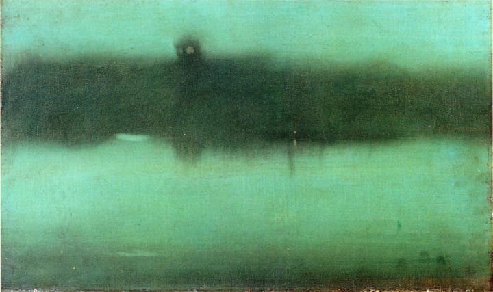 American Gilded Age artist James McNeill Whistler was among the most creative artists of the 19th century. This is among his best paintings done on a darkened canvas. It is a distinguished piece belonging to the Tonalism art movement. Whistler’s mastery in capturing the mood and essence of the nocturnal landscape is evident, making this piece a serene and poignant representation of Tonalism.
