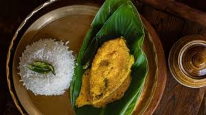 Grind mustard seeds, coconut, and green chilies into a fine paste. Add turmeric, salt, and mustard oil to the paste. Coat the fish with this mixture and place in a steel tiffin box or banana leaf wrap. Steam for 20-25 minutes in a rice cooker or over boiling water. Drizzle a bit more mustard oil before serving with rice.