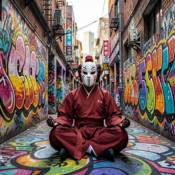 LEODAV, a Korean graffiti pioneer, controlled "rough industrial sprays" fingertip-style for one-take portraits, proving technique trumps tools.