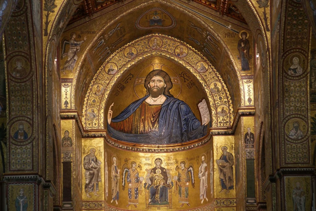 Monreale Cathedral is 800-years-old located in Palermo. The interior features breathtaking mosaics, made from glass tiles, most of them gold. When light streams through the stained glass windows the interior seems to glow. The highlight is the mosaic of Christ Pantocrator (pictured above) created by Venetian and Muslim craftsmen in the 12th century.