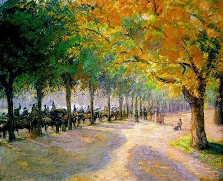 The parks in cities are where people go to relax, stroll, picnic, and enjoy themselves. These are paintings that famous artists have created of some of the most beautiful parks in the world. I think a painting of a park makes it even more desirable than a photograph.