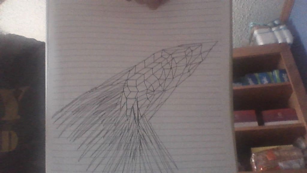 Here is a pen sketch of a bird somewhat in flight or frightened. Still in my idea of Cubism. The body is cubes, various triangles and squares.