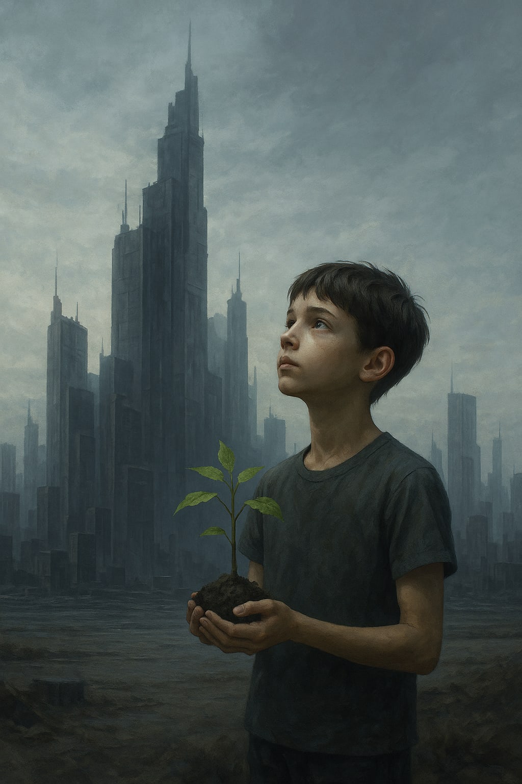 Eli was born in the ruins of an abandoned cabin in Greenland, where the atmosphere was still stable. Mara raised him alone for seven years. She taught him old songs, how to plant seeds, how to read by firelight. She told him stories of a time when children filled parks and laughter echoed in every home.