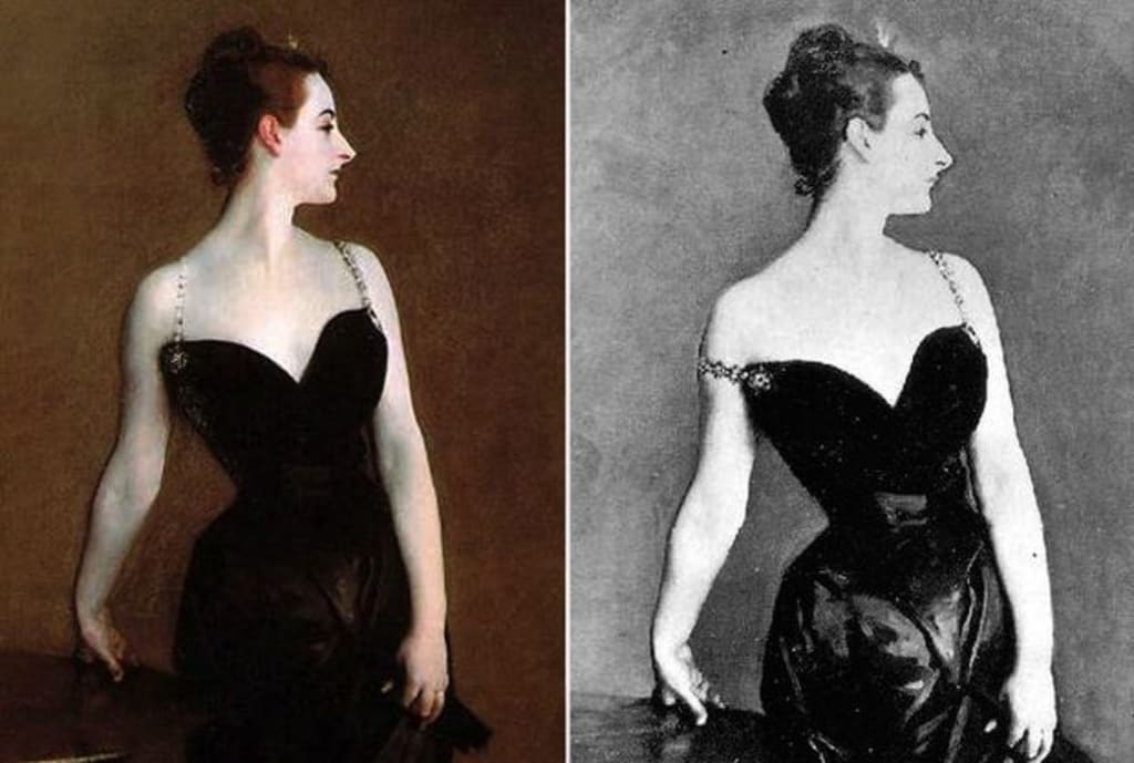 She is matter of fact in those first few moments. Her stilted movements until she lays belies the fact that she is no longer the girl, Virginie, but the woman, La Virginie, La Madame Gautreau.